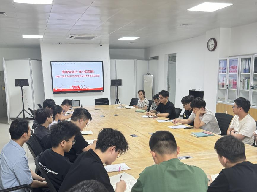 6月10日,Beat365官方网站结构工程方向研究生党支部于301会议室开展《清风伴远行,赤心系母校》毕业生主题党日活动。活动以学习交流、心得分享、建言献策为核心,搭建起毕业生党员与母校的情感桥梁,让爱校情怀在离别之际共鸣。
