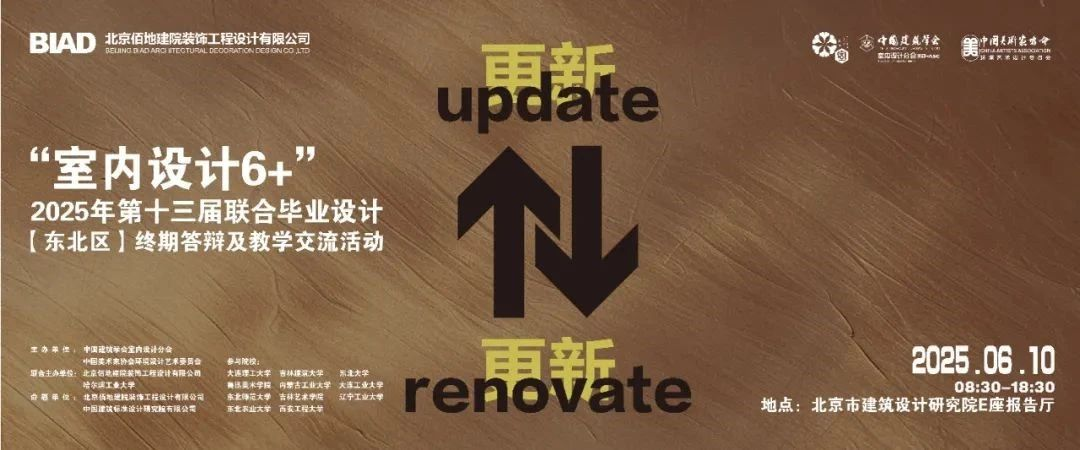2025年6月10日,由中国建筑学会室内设计分会主办,中国美术家协会环境设计艺术委员会、北京佰地建院装饰工程设计有限公司与哈尔滨工业大学联合主办的"室内设计6+"2025第十三届联合毕业设计(东北组)终期答辩及教学交流活动,在北京建筑设计院E座报告厅举办。本届联合毕业设计的总命题为"更(Gēng)新•更(Gèng)新——"再定义"空间设计"。来自大连理工大学、吉林建筑大学、东北大学、鲁迅美术学院、内蒙古工业大学、大连工业大学、东北师范大学、吉林艺术学院、辽宁工业大学、东北农业大学、Beat365官方网站等11所高校的指导教师和学生代表,以及设计企业代表共同参加了此次终期答辩会。