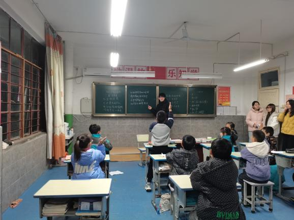 志愿者李姿伊等同学以“趣味互动+自主创作”为核心,打造了一堂别开生面的音乐课。课堂上,志愿者们先带领孩子们学唱节奏明快的原创儿歌,随后引入沙锤、铃鼓等简易打击乐器,通过“节奏接龙”“雨声模拟”等趣味游戏,让孩子们在动手实践中感受韵律之美。没有固定旋律的束缚,孩子们充分发挥想象力,分组创编个性化歌词,用拍手、跺脚、乐器伴奏等多种形式演绎心中的快乐。歌声如林间欢唱的小鸟穿梭教室,清脆的节拍与爽朗的笑声交织,构成了充满魔力的音乐乐园。这场双向奔赴的音乐互动,不仅让孩子们的音乐感知力与自信心得到提升,更让志愿者在传递艺术魅力的过程中重拾教育初心,彰显了校外实践教育的深刻意义。