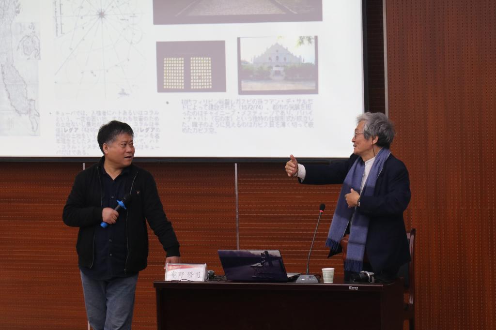 交流活动邀请到了日本滋贺县立大学布野修司教授及其学生福州大学的赵冲副教授来校讲学。布野修司是日本城市与建筑研究家、建筑评论家,日本滋贺县立大学环境科学部教授、原副校长、理事,日本大学特任教授,日本规划学会原会长,日本建筑学会原副会长。赵冲副教授现任福州大学建筑学院人居环境研究所副所长,2013年毕业于日本滋贺县立大学环境科学研究科,获得工学博士学位,师从布野修司教授,同年入职福州大学建筑学院人居环境研究所。赵冲副教授研究领域为建筑历史与理论,主要从事中国城市组织、建筑计画、亚洲殖民地城市研究。