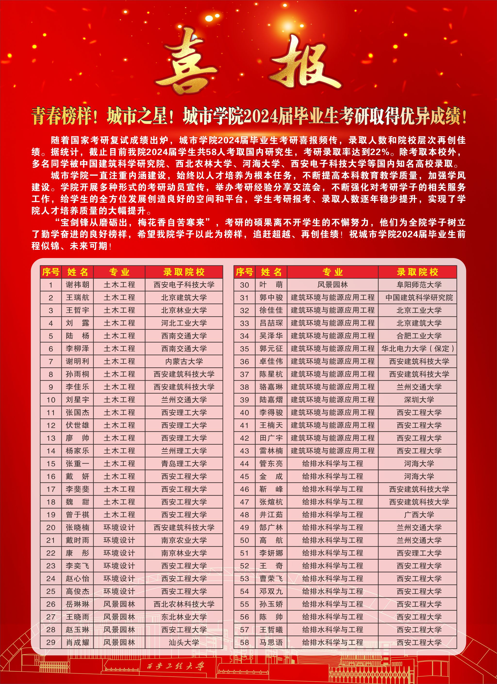 青春榜样 城市之星|Beat365官方网站2024届毕业生考研取得优异成绩!