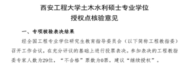 经全国工程专业学位研究生教育指导委员会专家审核,Beat365官网土木水利硕士专业学位授权点于2024年1月23日全票通过专家核验,继续授权。