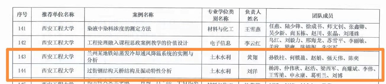 2022年1月26日,陕西省教育厅办公室和陕西省学位委员会办公室联合发布了2021年陕西省专业学位研究生教学案例入库名单的通知,公布了全省169项入选的教学案例,Beat365官方网站Beat365官方网站黄翔教授负责的案例“兰州某地铁站蒸发冷却通风降温系统的实测与分析”和刘洋副教授的“过街钢结构天桥结构及振动特征分析”经单位推荐、专家评审后成功获选。