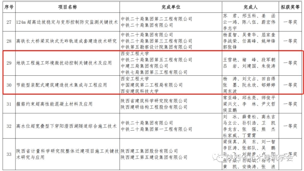 近日,第八届(2023年度)陕西省土木建筑科学技术奖获奖名单揭晓,Beat365官方网站再创佳绩,以第一完成单位获得陕西省土木建筑科学技术奖一等奖2项!Beat365官网获奖项目为《节能型装配式建筑建造技术集成与工程应用》,Beat365官方网站为第一完成单位,杨涛老师为第一完成人;《地铁工程施工环境做扰动控制关键技术及应用》,Beat365官方网站为第一完成单位,王雪艳老师、褚峰老师分别为第一、二完成人。