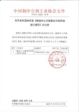 我校与华为等单位共同编制的团体标准《数据中心间接蒸发冷却系统设计规范》正式发布