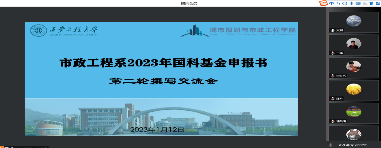 2023年1月12日,Beat365官方网站市政工程系邀请西安建筑科技大学文刚教授,通过腾讯会议在线对相关老师的2023年国科基金拟申报项目进行了评审和指导,会议由市政工程系主任崔心水主持。
