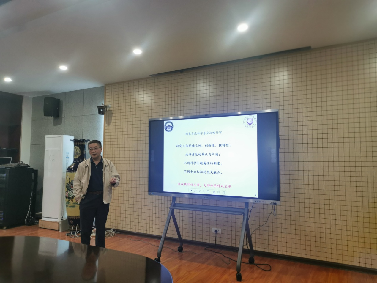 刘义教授从国家自然科学基金评审要求、近年基金资助率的变化趋势、新时代科学基金资助导向以及申请书撰写等方面进行了详细阐述。在申请书撰写方面,刘教授从基金项目的选题、立项依据的撰写、研究目标和研究内容的一致性、研究方案的新颖独特性等方面进行了深入剖析,就如何提高基金申请书的质量和命中率进行了指导,强调“题目”和“摘要”的高度概括和精练、“拟解决的关键科学问题” 的准确寻找,为基金申请的有效避坑提供了良好建议。另外,刘教授从评审专家的角度对评审要点和注意事项进行了说明,分享了自己的科研经历,根据教师们已申报项目的评审意见,给予了诸多有益建议,现场气氛融洽活跃,与会教师们均表示受益匪浅。