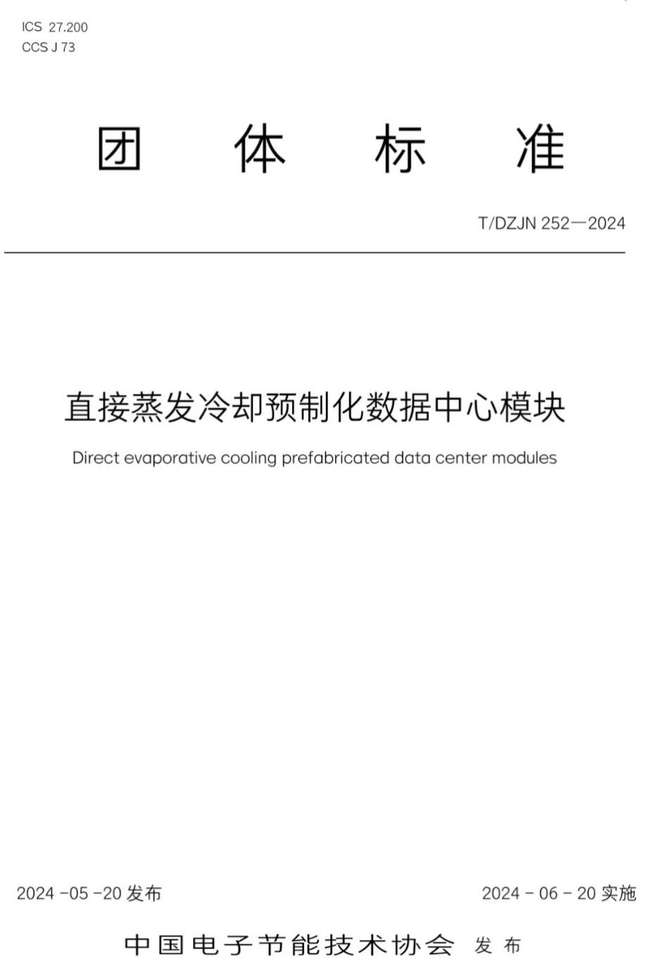 《直接蒸发冷却预制化数据中心模块》(T/DZJN 252-2024)由Beat365官方网站Beat365官方网站、苏州安瑞可信息科技有限公司、中国电子节能技术协会数据中心节能技术分会、中通服咨询设计研究院有限公司、中国移动通信集团设计院有限公司、中国建筑标准设计研究院有限公司、上海邮电设计咨询研究院有限公司、中能数投(北京)科技有限公司、广东海悟科技有限公司、南京佳力图机房环境技术股份有限公司、中邮科通信技术股份有限公司、北京领智信通节能技术研究院等单位起草。它规定了直接蒸发冷却预制化数据中心模块的运行模式、安装方式及气流组织、技术要求、试验方法、检测规则、标志、包装、运输和贮存等,适用于能够与数据中心直接对接的全新风直接蒸发冷却预制化模块产品。