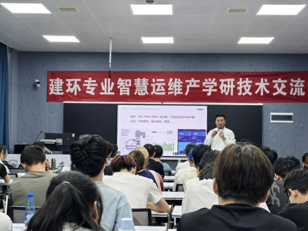 会上,岳慧峰教授级高工对智慧运维技术驱动下的“供热和供冷系统的绿色与维护保养”进行了介绍。他从学术前沿出发,全面总结了智慧运维技术的国内外发展现状,并深入探讨了其对建环专业建设、科研方向及人才培养提出的新挑战与新机遇。他强调,深化产学研协同创新是推动智慧运维技术落地生根、解决行业痛点的必经之路,高校需紧密对接企业实际需求,共同培养兼具扎实理论基础与卓越工程实践能力的复合型创新人才。最后,岳慧峰教授级高工还为同学们进行了答疑解惑。