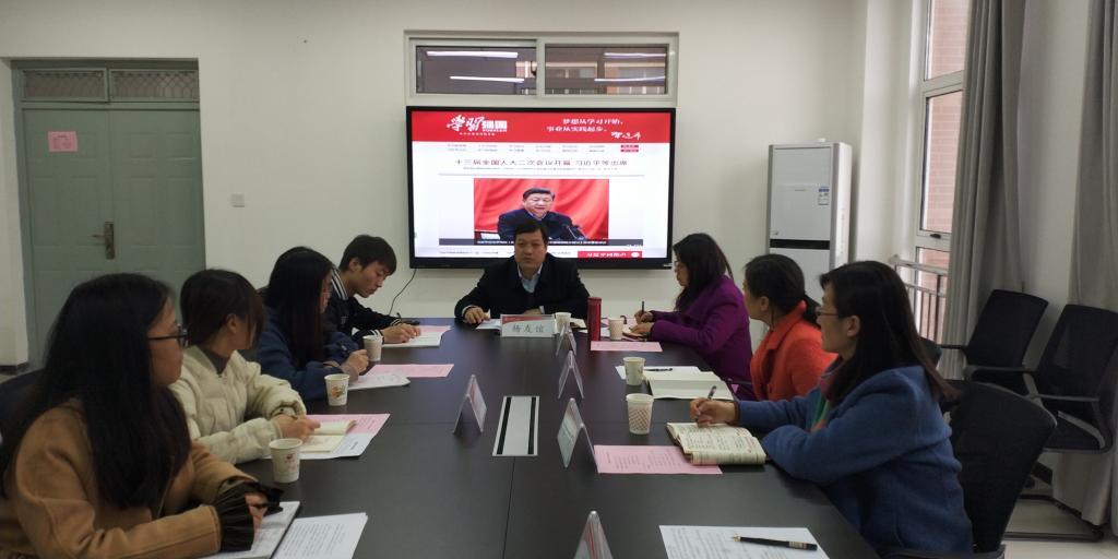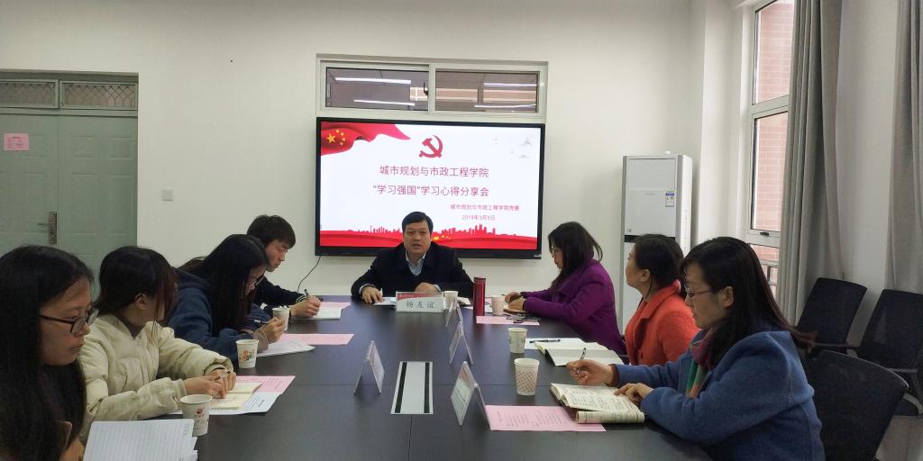 2019年3月5日下午16:00,Beat365官方网站在临潼校区学院301会议室召开“学习强国”学习心得分享会,参加会议的有学院党委书记杨友谊、副书记袁群、组织委员宋经华、建环土木系教工党支部书记屈元、辅导员王春元及优秀学员学生代表。会议由袁群主持。