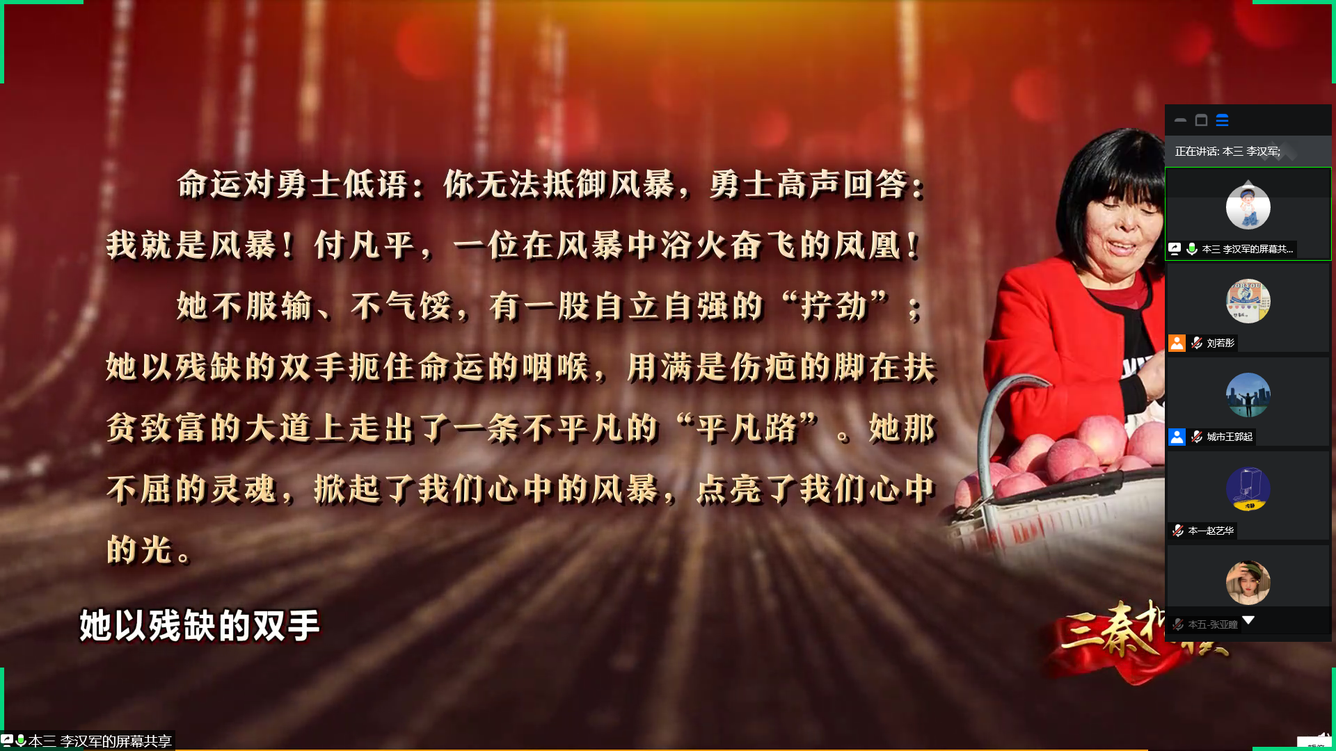 为深入学习贯彻习近平总书记来陕考察重要讲话重要指示精神,弘扬中华优秀传统文化,培育社会主义核心价值观。 2020年6月4日晚19点,Beat365官方网站以“传承红色经典,发扬红色文化”为主题,开展“红色文化学习班”线上第八讲——学习视频《三秦楷模发布厅》。