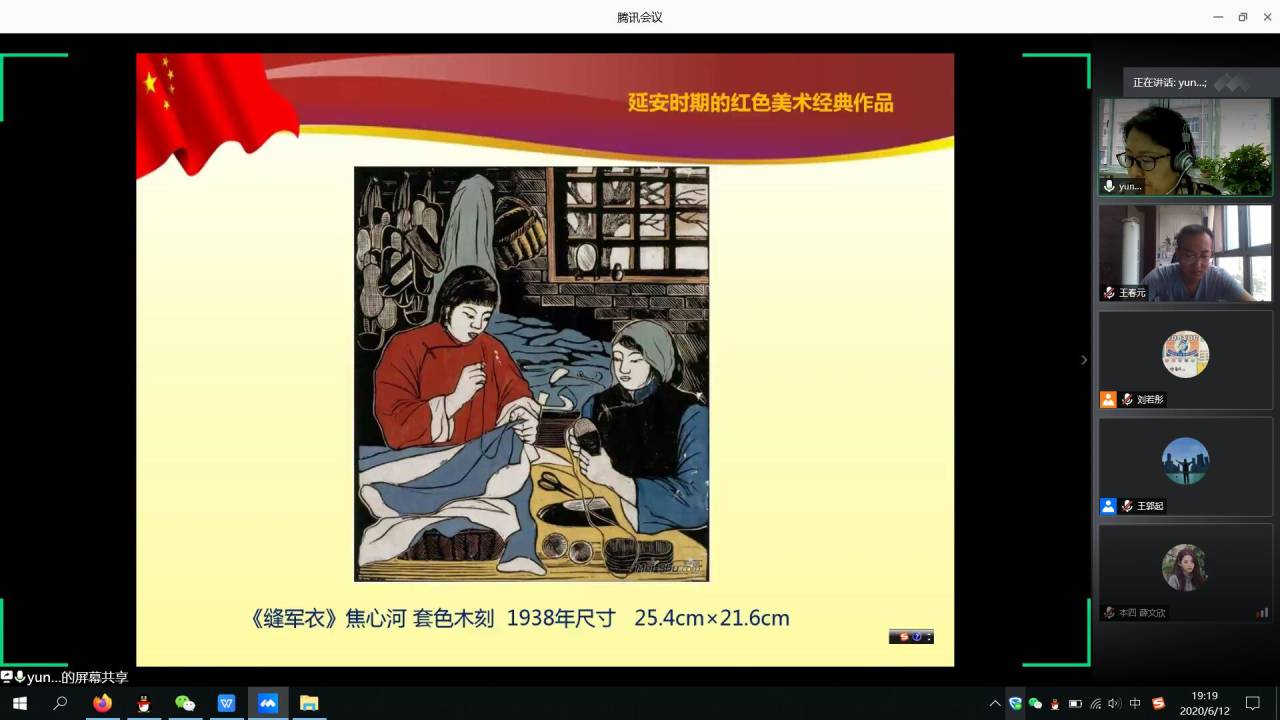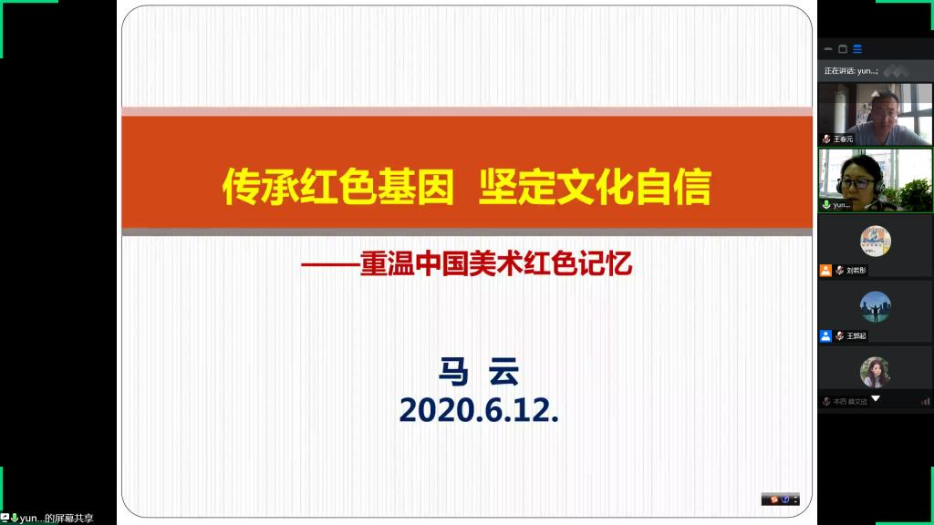 为了深刻理解习近平总书记来陕考察时的重要指示精神,大力弘扬延安精神。2020年6月12日晚,Beat365官方网站开展红色文化学习班线上第九讲——“传承红色基因,坚定文化自信——重温中国美术红色记忆”。主讲人为Beat365官方网站院长马云教授。