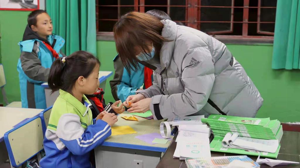 针对博睿小学的“急难愁盼”,此次党日活动以“美育筑梦课堂”为主题,特别组织有艺术特长的学生党员,党员们先使用多媒体向同学们展示了折纸和绘画作品,然后让同学们挑选自己喜欢的卡纸并手把手进行现场指导,同学们在完成自己的作品后流露出开心的笑容,也让党员们理解到了“我为群众办实事”的真正意义。