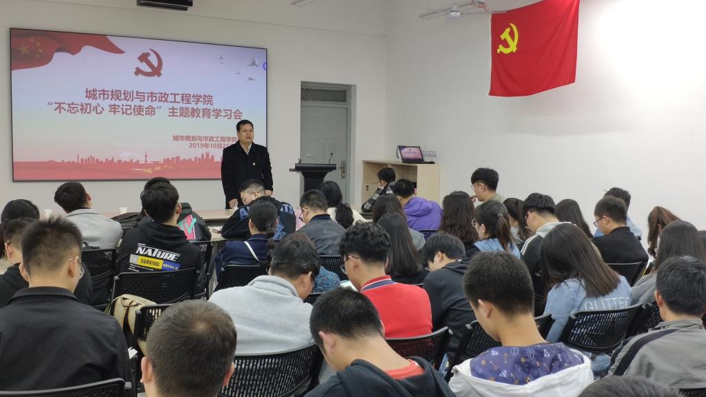 2019年10月21日晚,学院在临潼校区8#322会议室召开“不忘初心、牢记使命”主题教育学习会暨《榜样4》集体观看学习活动。参加会议的有院党委书记杨友谊、院办主任何华、院长助理胡星哲、学工办主任凌旭、建筑环境与能源应用工程系教师郑松、支部书记赵浩、辅导员王春元以及学生党员代表。