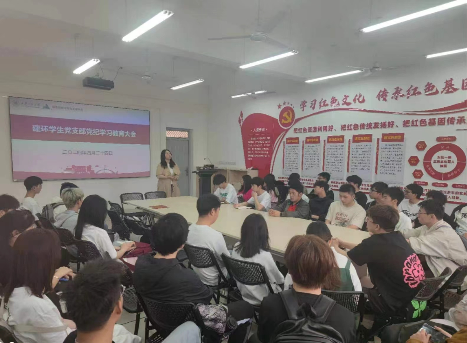 为提高党员的党性修养,强化党员的纪律意识,增强遵守党的纪律的自觉性,保证党的团结统一和党的路线、方针、政策的贯彻执行,推动全面从严治党向纵深发展。2024年4月24日中午,建筑环境与能源应用工程党支部在学院楼322会议室召开党纪学习教育大会。该支部全体党员(含预备党员)参加会议。会议由党支部书记杜倩主持。