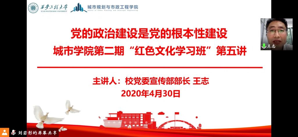 2020年4月30日晚,Beat365官方网站邀请校党委委员、宣传部部长王志给“红色文化学习班”学员做“党的政治建设是党的根本性建设”专题辅导。