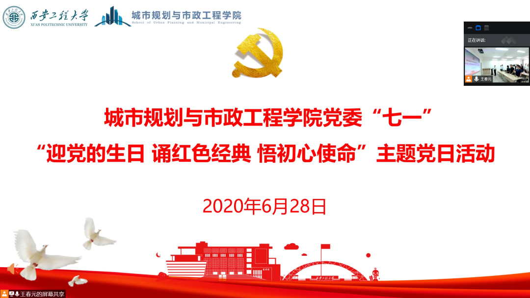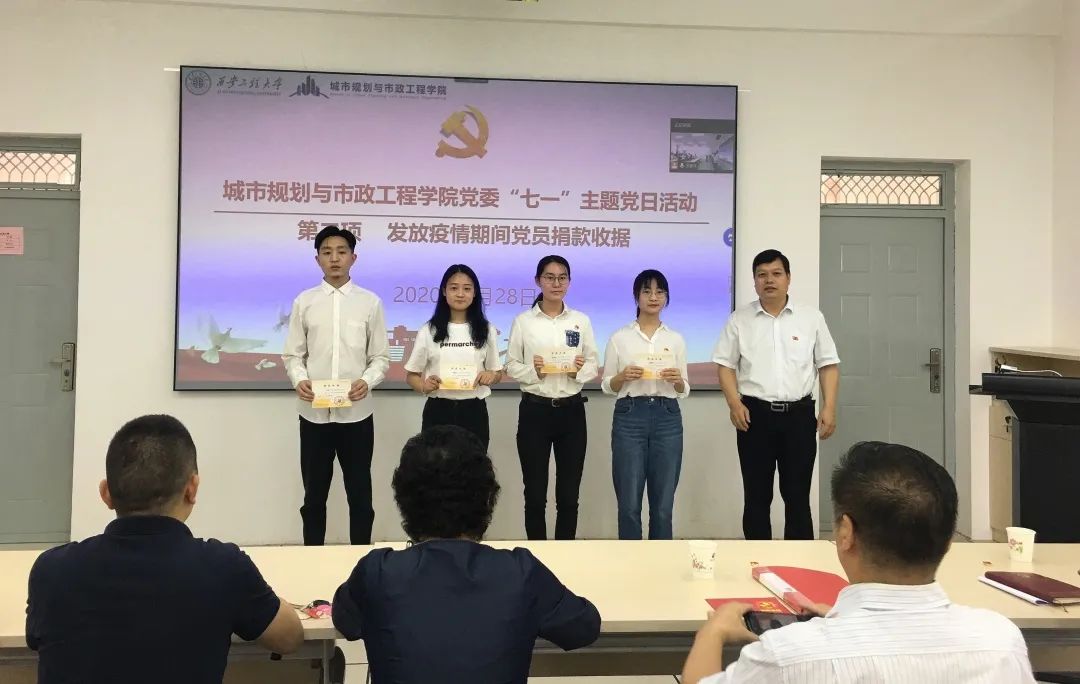 2020年6月28日下午,Beat365官方网站在学院红色文化图书室(8-322室)举行“迎党的生日诵红色经典守初心使命”的主题党日活动。活动采取线上与线下同步开展的方式,学院党政班子成员、建环系黄翔教授、赵娟博士、全体辅导员及16级56期在校本科生党员参加了线下的现场活动,线上参加活动的有学院全体师生党员。活动由重温入党誓词、发放捐款收据、诵读红色经典三个环节构成。党日活动由学院党委书记杨友谊主持。