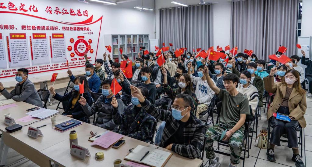 开班仪式结束后,党课第一讲开讲。第一讲展示的是由学院土木工程专业本科生党支部自编自演的红色小话剧——《特级战斗英雄——黄继光》。党员同志们生动形象的演出,感染着会场的每一位学员,他们情不自禁的挥动着手中的五星红旗,用经久不息的掌声对志愿军战士表达了崇高的敬意。红色小话剧是该支部的品牌活动,同时也是学院“五位一体”红色文化育人体系的重要组成部分。