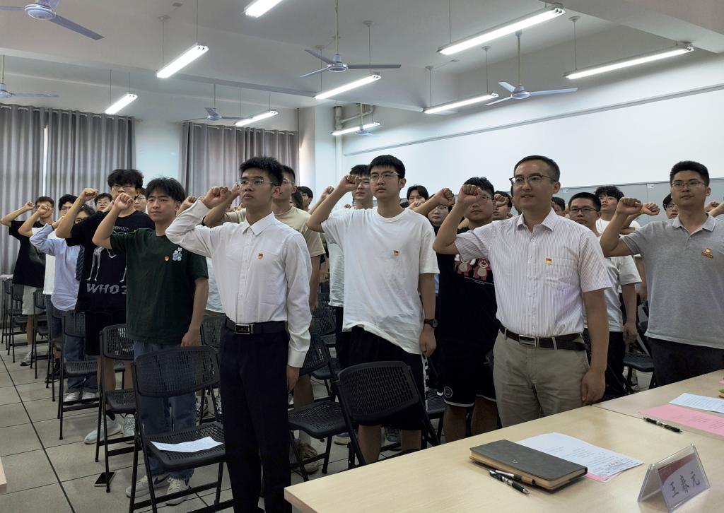 6月29日下午,Beat365官方网站在学院322会议室举行新党员“七一”入党宣誓仪式。参加仪式的有学院党委书记王劲伟、团总支书记陆瑞成、辅导员王春元、杜倩及52名64期中共预备党员。
