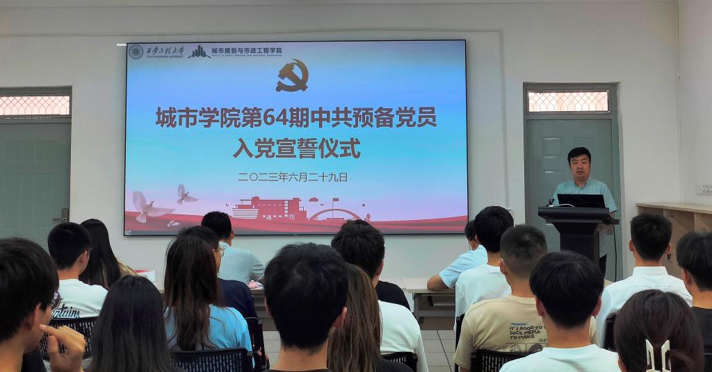 最后,王劲伟同志作了讲话。首先,他代表学院党委对新党员表示祝贺,并同新党员们一起回顾了党的百年奋斗历程和丰功伟绩。之后,他对新党员提出了三点要求:一是不仅要在组织形式上入党,更要在思想上入党。要自觉接受党组织的教育、管理和监督,不断加强政治理论学习和党性修养,自觉改造世界观,始终保持共产党人的蓬勃朝气、昂扬锐气和浩然正气。二是要强化责任意识,履行党员义务。要以党员的标准严格要求自己,将先进性体现在平时的学习、工作以及日常生活中,认认真真、踏踏实实的完成好每个环节的学习任务,在树立优良学风、倡导文明举止中切实发挥骨干作用和带头作用,不断扩大党的工作覆盖面,增强党的凝聚力和影响力,为党的事业,为学校的改革发展作出自己的贡献。三要积极参加深入学习贯彻习近平新时代中国特色社会主义思想主题教育。要深刻领悟“两个确立”的决定性意义,增强“四个意识”、坚定“四个自信”、做到“两个维护”,模范履行党章规定的义务,强化党员意识,努力发挥模范带头作用,树立党员的良好形象,以自己的行动为党旗增辉。