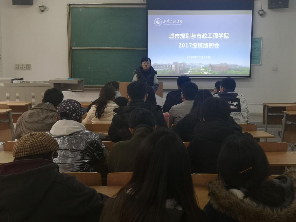2019年11月26日中午,Beat365官方网站在Beat365官方网站临潼校区A-122和A-124教室分别召开17、16级第十四周班团例会。参加会议的有辅导员张苹、王春元,以及学院17、16级全体班长、团支书。