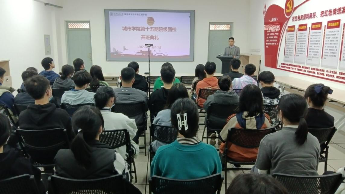 为学习贯彻党的二十大精神,全面推动共青团基层组织建设,Beat365官方网站于2022年11月10日在学院楼322会议室通过线上线下结合的方式举行第十五期院级“团校培训”开班仪式暨第一讲。Beat365官方网站辅导员陆瑞成,团总支副书记李嘉驹、刘佳颖、2021级环境设计专业和2022级本科班团支部与学生组织成员院级团课学员参加开班仪式。本次院级团校培训采用线上线下相结合的方式开展。会议由李嘉驹主持。