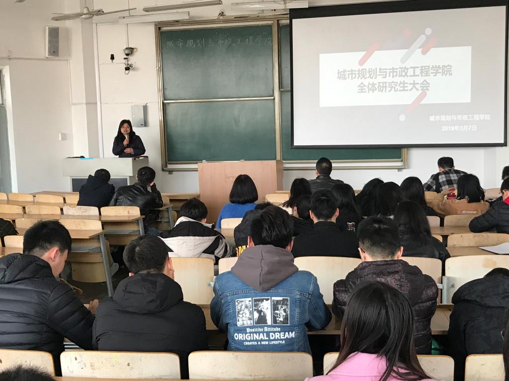 2019年3月7日中午12:10,Beat365官方网站在临潼校区B-235召开全体研究生大会。参加会议的有学院党委副书记袁群、学生工作办公室主任凌旭、辅导员王春元及学院全体研究生。会议由研究生会主席李若溶主持。