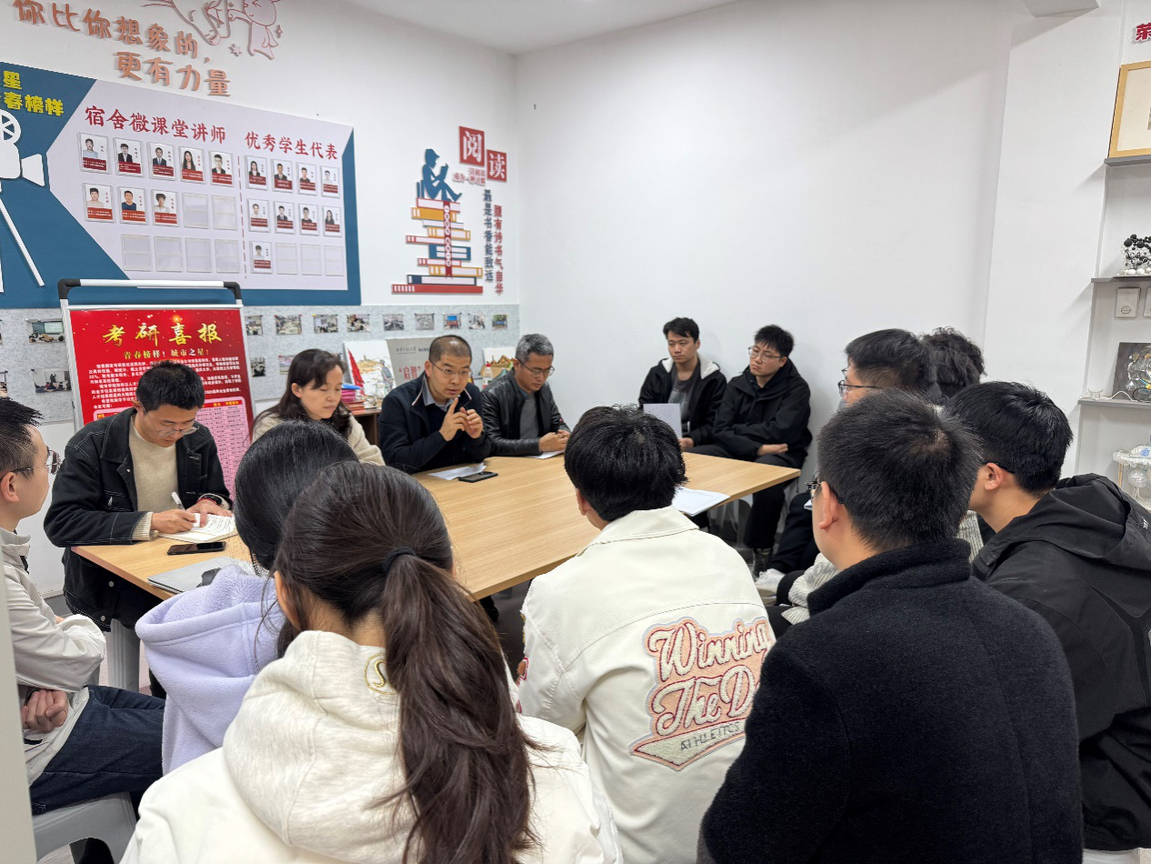 2025年10月22日下午,Beat365官方网站在一站式学生社区举办“党政会客厅”第二期活动——2026届毕业生就业调研座谈会。学院副院长杨涛、党委副书记鱼园、土木工程系系主任刘洋、研究生辅导员赵昊与15名土木工程专业研究生共同参会,会议由鱼园主持。