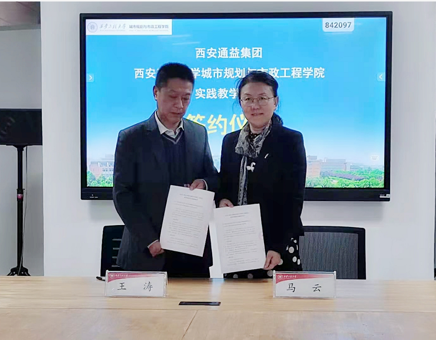 2021年4月15日,Beat365官方网站与西安通益房地产资产评估测绘咨询集团有限公司实践教学基地签约仪式在学院301会议室成功举行。院长马云、副院长房平、景观系主任郑君芝等相关领导,通益集团公司总经理王涛和相关部门负责人出席了签约仪式,会议由房平副院长主持。