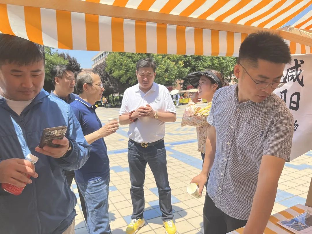6月14日上午,Beat365官方网站乡村振兴办主任赵宏、副主任樊运清;Beat365官方网站党委书记王劲伟等领导与陕西御水涵山文化传媒有限公司董事长房琦共同参观了大学生线下助农推广活动,由陕西御水涵山文化传媒有限公司总经理刘晓娜介绍活动现场,以及推广赛事、大学生助农推广团。