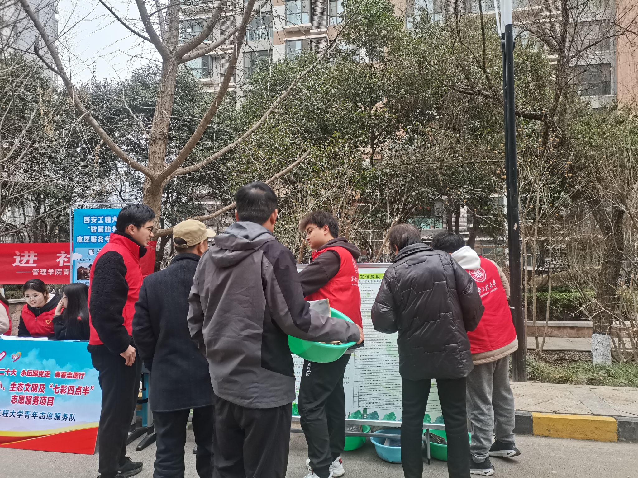 3月5日雷锋纪念日,Beat365官方网站“大手拉小手”服务队和筑梦建环社团两个功能型团支部,走进西安市长安区韦曲街道航开路社区,联合开展学雷锋主题团日活动,参加团省委“学习二十大永远跟党走青春志愿行”2024年陕西青年“学雷锋志愿服务”示范行动,进行“关爱大秦岭,保护母亲河”生态保护志愿宣讲活动。