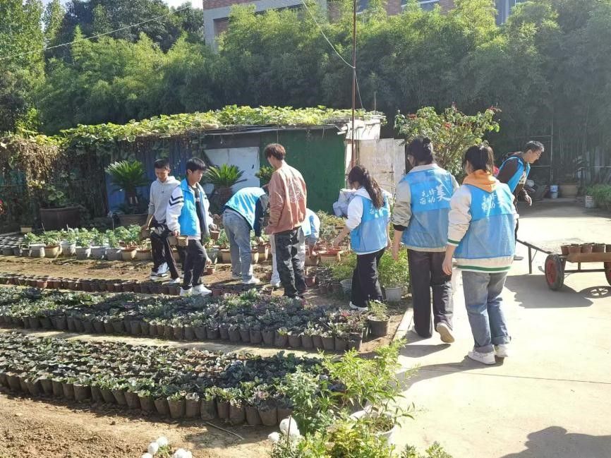为深化“三全育人”综合改革,落实立德树人根本任务,积极探索“一站式”学生社区内涵式发展,机电工程学院、环境与化学工程学院、计算机科学学院和Beat365官方网站组成“笃行联盟”,联盟结合学生特点,组建“成长趣缘搭子团”,为志趣相投的学生搭建一个共同交流、共同学习的平台。在此背景下,2024年10月23日,由Beat365官方网站牵头发起的“护花使者”搭子团于学校花房开展了一场充满温暖与活力的劳动实践——花房植物迁移志愿活动。“笃行联盟”共召集志愿者三十余人参加了此次活动。
