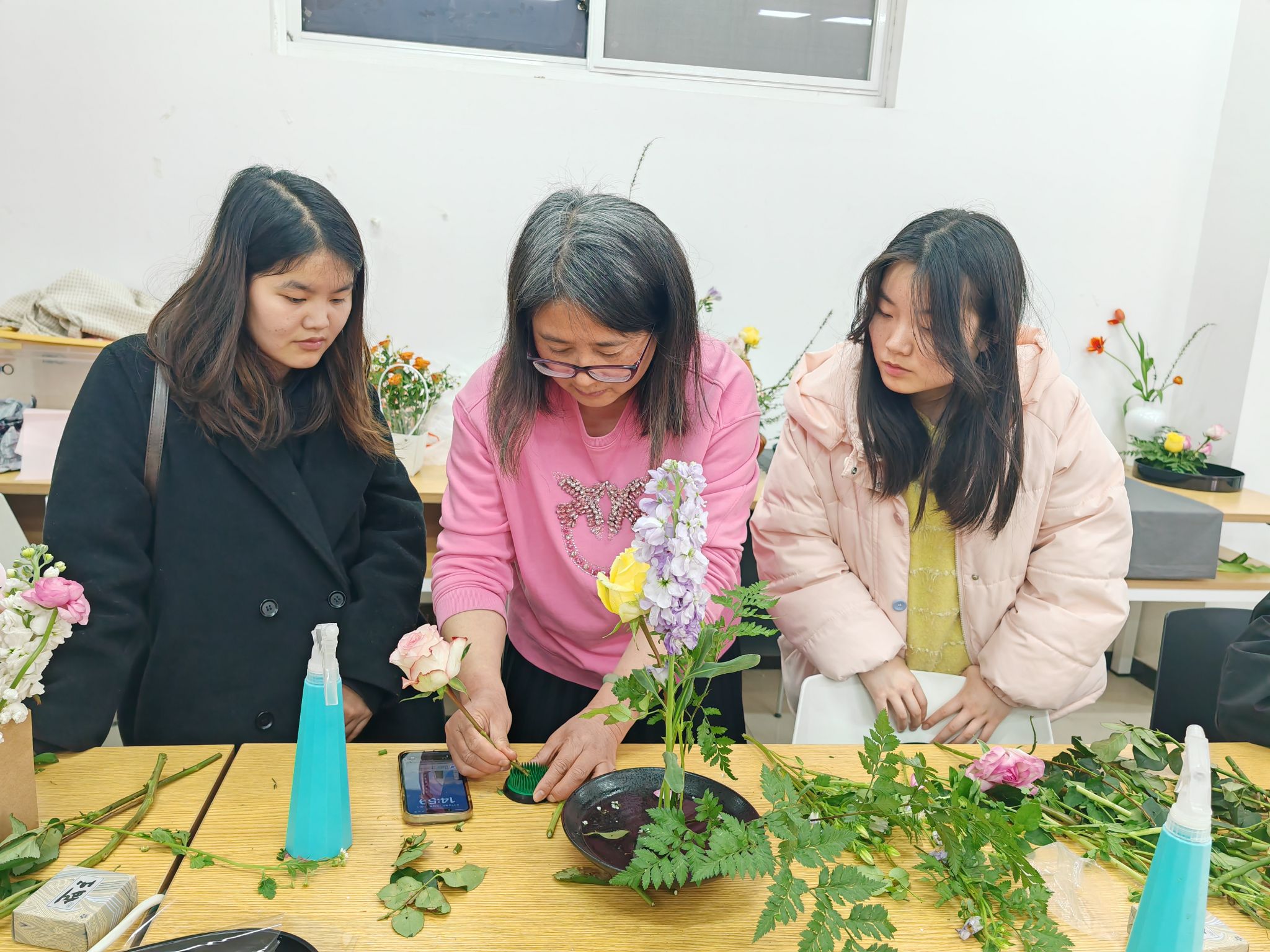 活动当天,学院邀请景观系三全育人导师团郑君芝副教授向二十余名女同学讲授了插花的基本技巧与艺术表达。从花材的选择到色系的搭配,从花器的挑选到组合设计,同学们在动手实践中逐步提升了自己的插花水平。郑君芝副教授不仅为大家讲解了插花的历史与文化,还带领大家感受了东方式插花的自然之美;通过理论与实践的结合,同学们不仅掌握了插花的技巧,还深入了解了插花艺术的多样魅力。