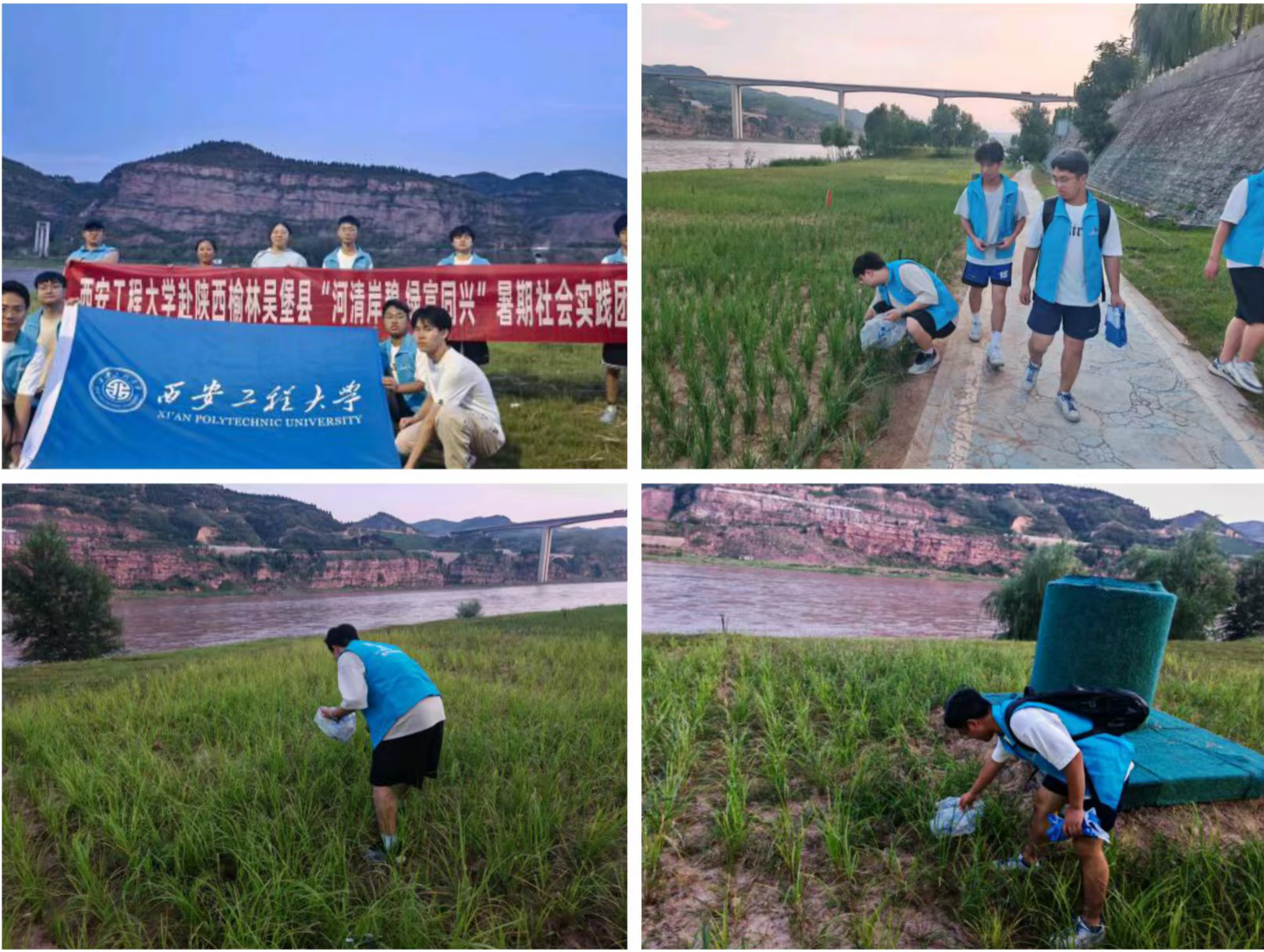 炎炎烈日下,吴堡县黄河岸边迎来了一抹亮眼的志愿青春蓝。实践团成员深入吴堡县黄河滩涂进行河道垃圾清理、黄河生态宣讲以及黄河水样采集等工作。