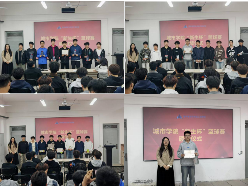 决赛之夜更是高潮迭起。冠军争夺战中,两支队伍比分紧咬,攻防转换节奏飞快。球员们顶住压力,凭借精湛的技术和坚定的信念,为现场观众呈现了一场精彩绝伦的巅峰对决。最终,2025级给排水3班凭借稳定的发挥和默契的团队协作摘得桂冠,建环1班和给排水2班分获亚军与季军。学院团委副书记杜倩为获奖队伍颁发奖杯与荣誉证书,并对所有参赛队伍的全力以赴表示肯定。