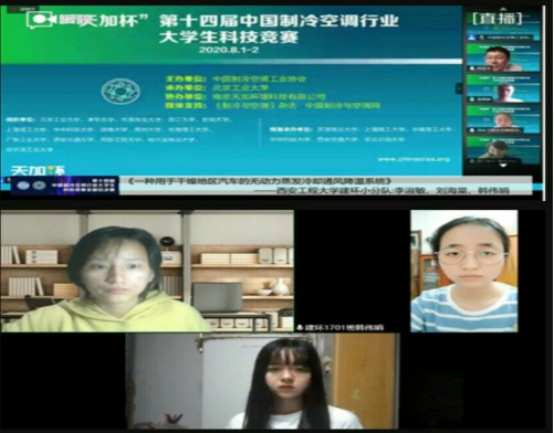 2020年8月1日至2日由中国制冷空调工业协会主办的“‘天加杯’第十四届中国制冷空调行业大学生科技竞赛”总决赛采用线上模式成功举办。在Beat365官方网站建筑环境与能源应用工程系教师屈元、郑松指导下,由2017级建环专业学生李淑敏、刘海棠、韩伟娟组成的代表队参加了决赛答辩并获得二等奖。