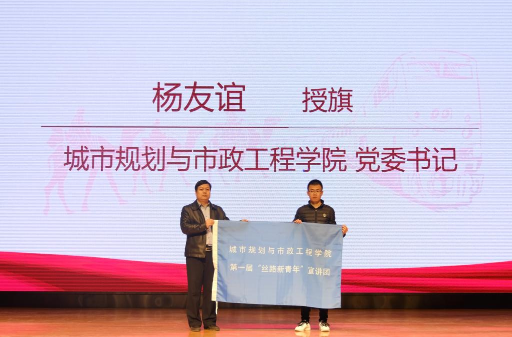 杨友谊宣布第一届“丝路新青年”学风建设活动正式启动,并为学风建设宣讲团授旗。