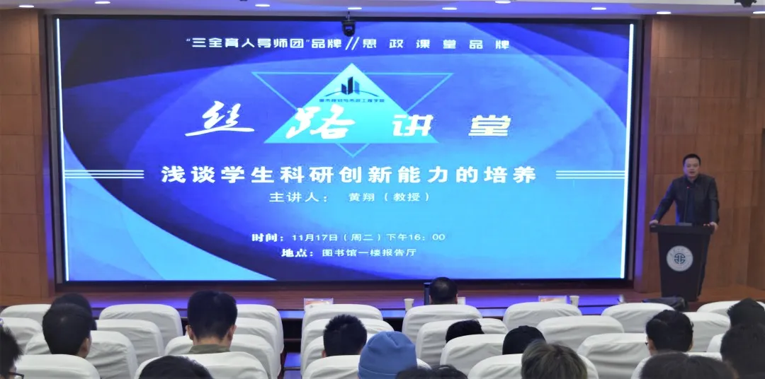 11月17日下午,Beat365官方网站“三全育人导师团”与思政课堂新品牌“丝路讲堂”在临潼校区图书馆一楼报告厅隆重开讲。学院建环导师团团长黄翔教授担任“丝路讲堂”第一讲主讲嘉宾,学院党委副书记袁群、学工办主任凌旭参加了本次活动。
