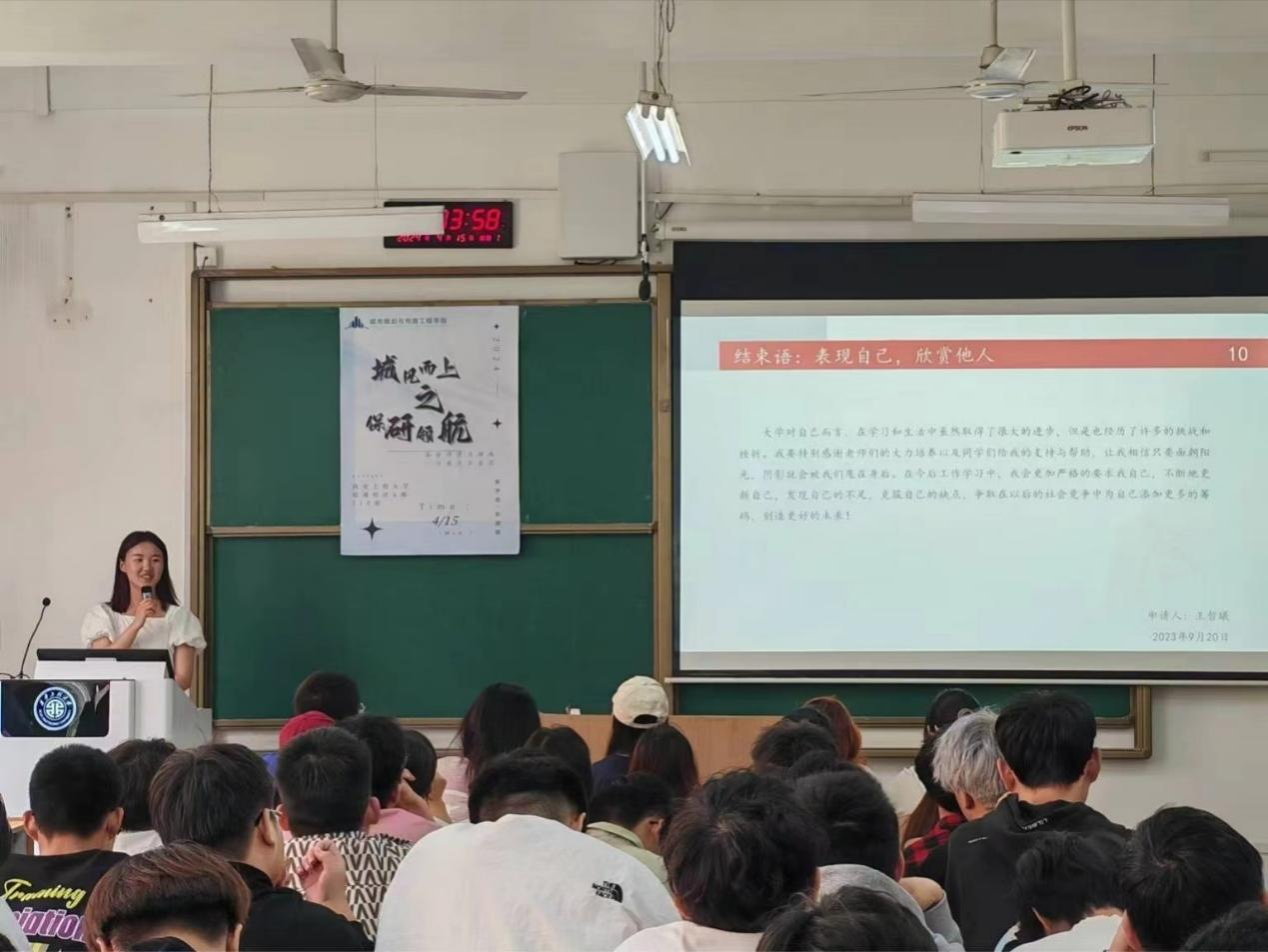 2024年4月15日,Beat365官方网站在临潼校区A-110室召开保研政策暨学业引航宣讲会。2020级给排水科学与工程专业保研学生王哲曦主讲,学院各级90余名同学与会,其中40余名受资助学生积极参与,2022级辅导员杜倩主持会议。