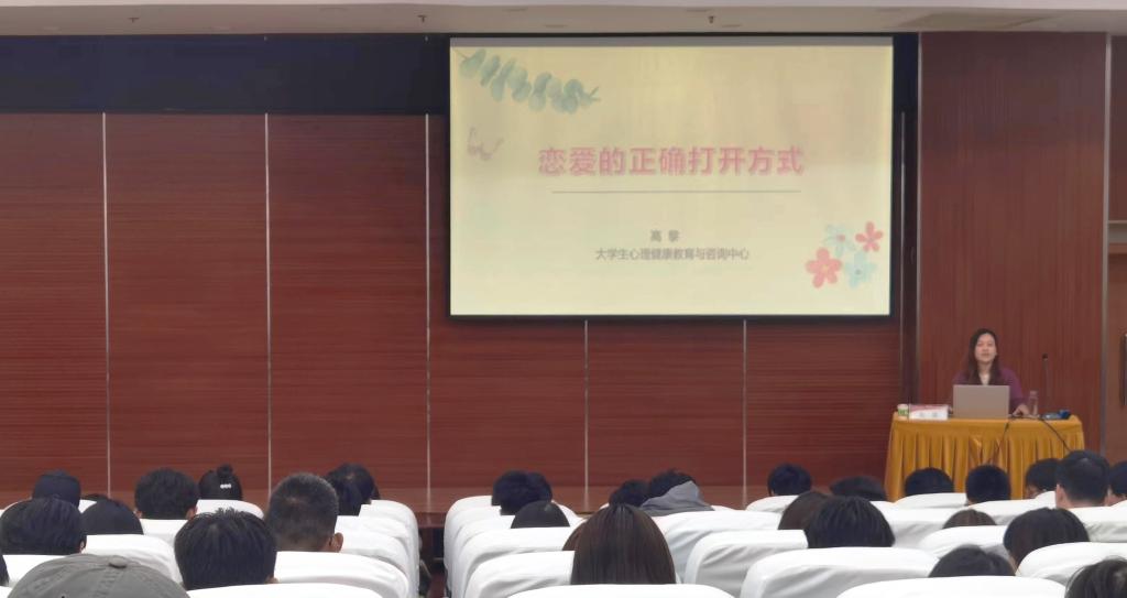 下半场邀请了我校大学生心理健康教育与咨询中心高黎老师在临潼校区图书馆二楼报告厅,做了题为“恋爱的正确打开方式”的主题报告,学院200多名师生参加了报告会。高黎老师从“理解爱情”“大学生常见情感困扰”“恋爱的正确打开方式”等方面,通过师生互动、多重角度、多个事例、多种方式的讲解让同学们了解了什么是正确的爱情观、如何树立正确的恋爱价值观。报告会在轻松愉悦的氛围中进行,也让同学们再次感受到了心理健康教育带给大家的快乐。