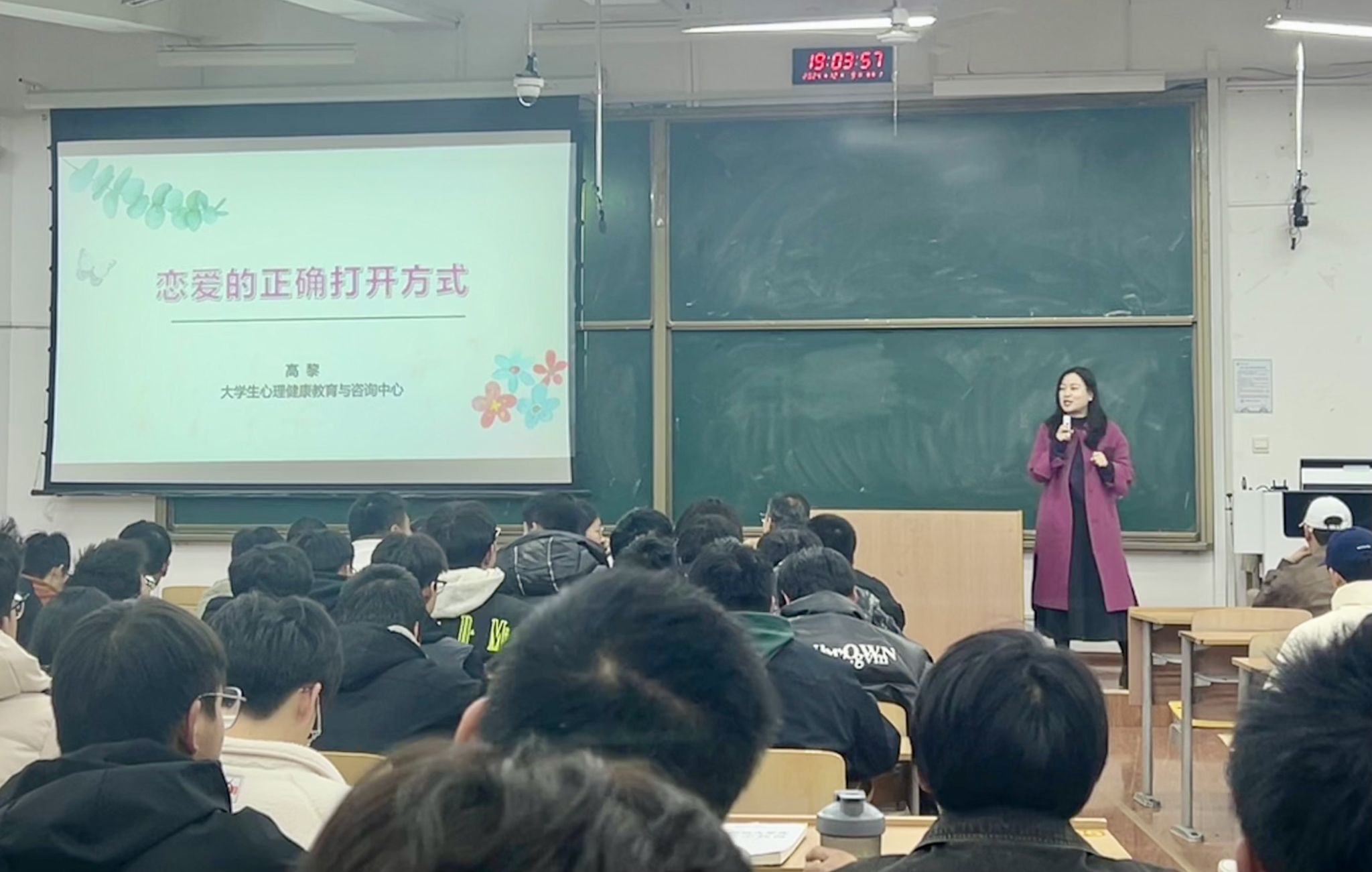 高黎老师以《恋爱的正确打开方式》为主题,从大学生恋爱观调查数据分析、理解爱情、大学生常见情感困扰、恋爱的正确打开方式等方面,通过师生互动、多重角度、多个事例、多种方式的讲解方式让同学们了解了什么是正确的爱情观、如何树立正确的恋爱价值观。报告会在轻松愉悦的氛围中进行,让同学们再次感受到了心理健康教育带给大家的快乐,同时也从心理育人的角度为同学们的生涯规划提供了一些启发和思考,帮助同学们更好找到发挥自我潜能的路径。